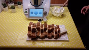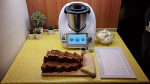 Mettere nel boccale lo zucchero, la vanillina ed azionare il bimby per 10 secondi a velocità 10, al termine riunire sul fondo del boccale con la spatola. Posizionare la farfalla sulle lame, mettere il mascarpone, la panna ed azionare il bimby per 2 minuti e 40 secondi da velocità 3 a velocità 4 aumentando la velocità piano piano ogni 30 secondi. Al termine riporre la crema momentaneamente in frigorifero.