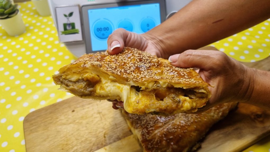 Posizionare la pasta sfoglia su una teglia rivestita con carta da forno, mettere al centro la zucca con i funghi, la provala e chiudere bene formando lo strudel. Sigillare bene i bordi, spennellare la superficie con il tuorlo, spolverizzare con il semi di sesamo e cuocere in forno preriscaldato ventilato a 180 gradi per 35-40 minuti. Terminata la cottura lasciare intiepidire e servire.