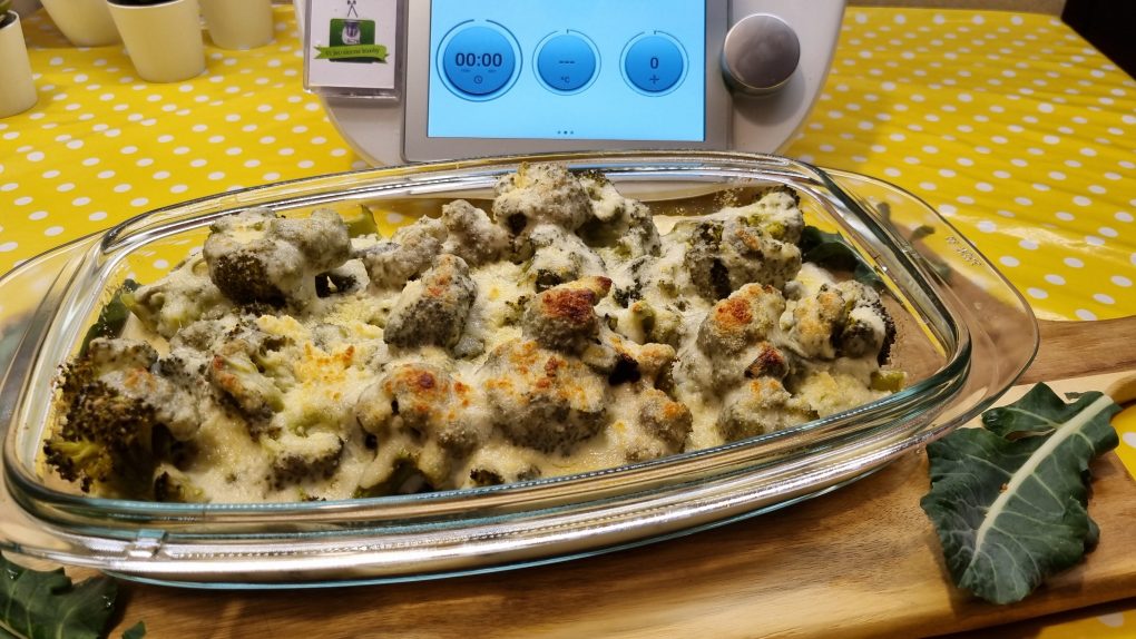 Mettere nel boccale l’acqua, chiudere con il coperchio senza il misurino, posizionare il varoma con i broccoli e far cuocere per 30 minuti a temperatura varoma e velocità 1. Al termine togliere il varoma, trasferire i broccoli in una pirofila da forno e svuotare il boccale.