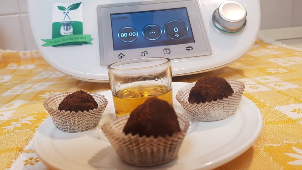 Mettere nel boccale i biscotti ed azionare il bimby per 10 secondi a velocità 7, al termine mettere da parte. Mettere nel boccale il cioccolato fondente e far tritare per 10 secondi velocità 10. Aggiungere il burro, lo zucchero e far amalgamare per 3 minuti a 70 gradi a velocità 2. Unire i biscotti e l’aroma di rum e far amalgamare per 20 secondi a velocità 4. Riporre il composto in frigorifero a rassodare per almeno 30 minuti.