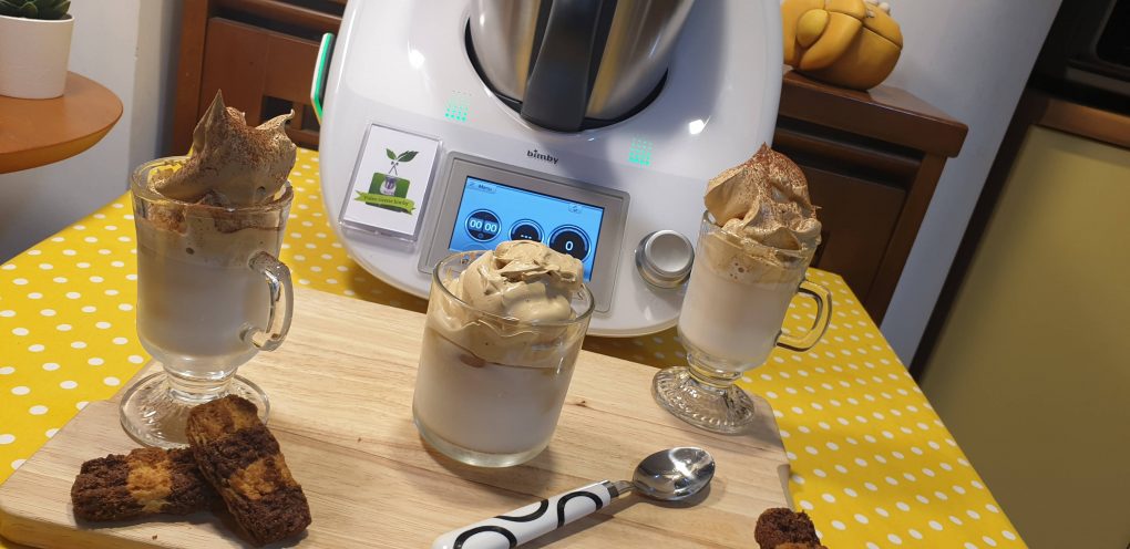 Iniziamo la ricetta posizionando la farfalla sulle lame. Mettere nel boccale lo zucchero, il caffè solubile, l’acqua tiepida ed azionare il bimby per 5 minuti a velocità 4 senza misurino. Al termine preparare il cappuccino al contrario.