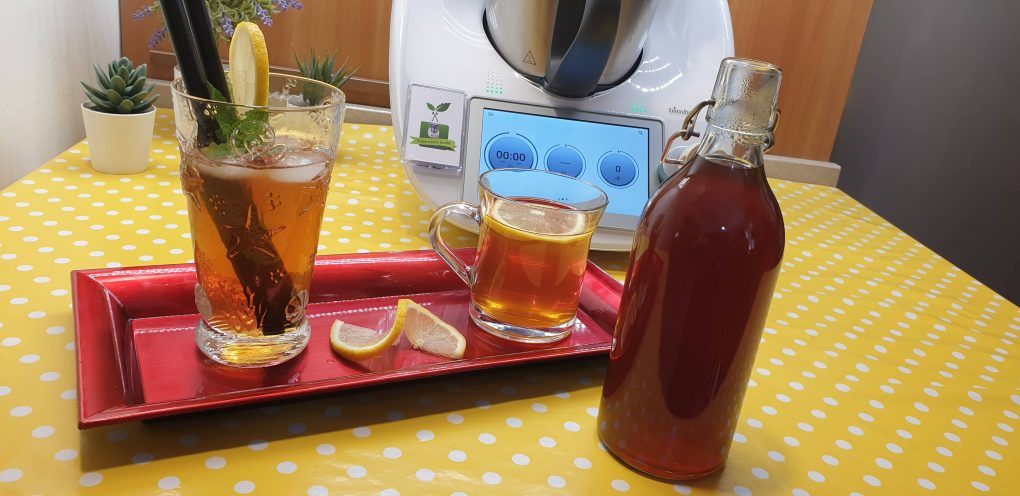 Al termine aggiungere le bustine di tè e lasciare in infusione per almeno 10 minuti. Trascorso il tempo filtrare e rimettere nel boccale il tè. Aggiungere lo zucchero, il succo di limone e far cuocere per 30 minuti a 100 gradi a velocità 1. Al termine lasciare raffreddare completamente, filtrare e riporre in bottiglie di vetro.