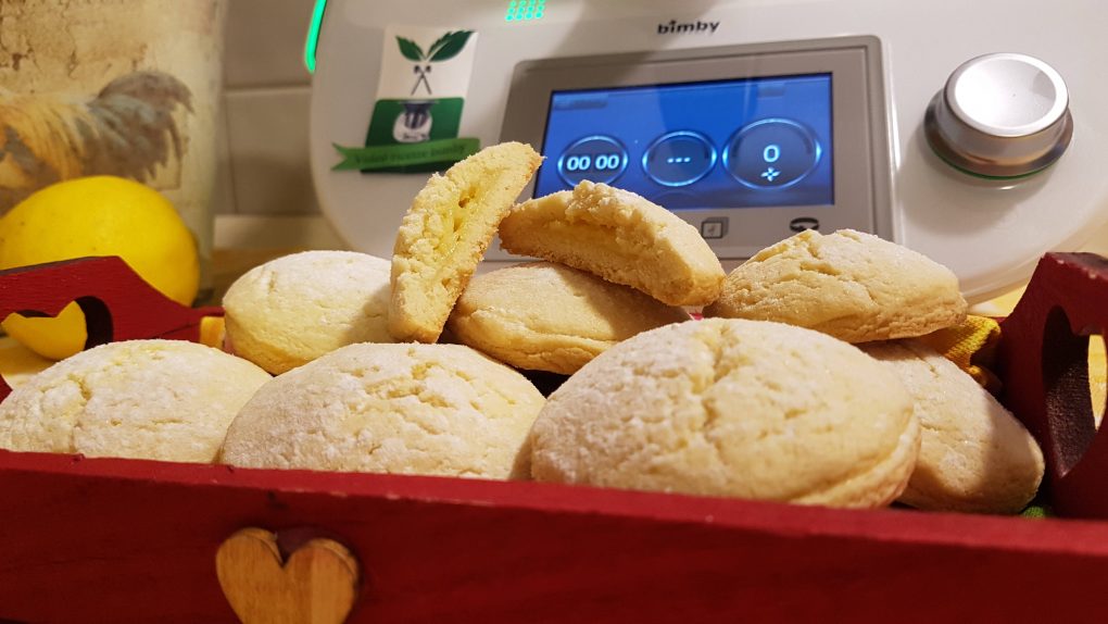 Iniziamo la ricetta con la preparazione della frolla per i biscotti mettendo nel boccale lo zucchero, la scorza del limone, la vanillina e far polverizzare per 20 secondi a velocità 10. Al termine riunire sul fondo del boccale con la spatola. Aggiungere il succo del limone, il burro, il sale, le uova, la farina e far amalgamare per 20 secondi a velocità 4. Avvolgere l’impasto nella pellicola trasparente e lasciarlo riposare in frigo per almeno un’ora. Lavare ed asciugare il boccale.