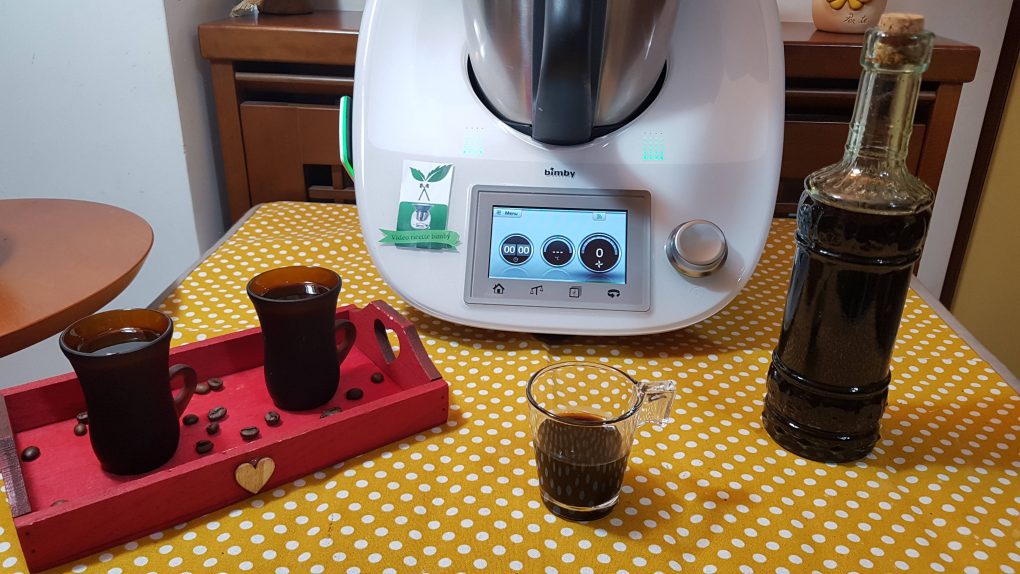 Mettere in una boccia di vetro con chiusura ermetica i chicchi di caffè e l’alcool e lasciare macerare per sei giorni in un luogo buoi e asciutto. Trascorsi i sei giorni mettere nel boccale lo zucchero e far polverizzare per 10 secondi a velocità 10, al termine riunire sul fondo con la spatola. Aggiungere il caffè espresso o fatto con la moka, i semi della bacca di vaniglia e far amalgamare per 20 secondi a velocità 3. Lasciare raffreddare all’interno del boccale. Prendere la boccia con l’alcool e i chicchi e filtrare con un colino rivestito da tessuto (cotone bianco). Aggiungere l’alcool filtrato nel boccale e far mescolare per 5 secondi a velocità 2. Imbottigliare e lasciare riposare al buio per 30 giorni prima di consumarlo.