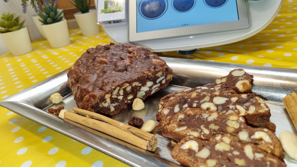Formare un filoncino e posizionarlo su una teglia rivestita con carta da forno. Cuocere in forno preriscaldato statico a 180 gradi per 20-25 minuti circa. Terminata la cottura, lasciare raffreddare completamente prima di rimuovere dallo stampo. Si conserva chiuso in contenitore ermetico per 7 giorni.