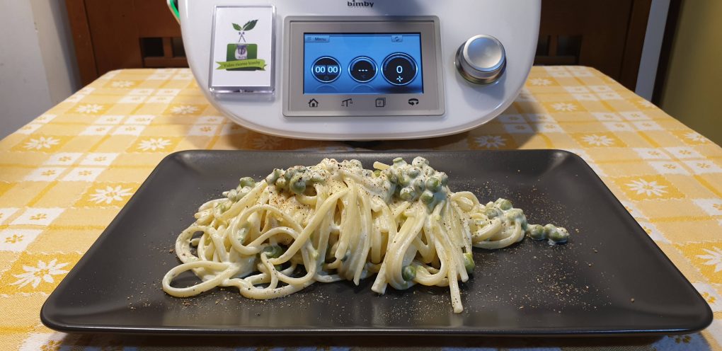 Iniziamo la ricetta mettendo nel boccale la cipolla e far tritare per 3 secondi a velocità 6. Al termine riunire sul fondo del boccale con la spatola. Unire l’olio e far insaporire per 3 minuti a 120 gradi a velocità 3. Aggiungere i pisellini e far cuocere per 5 minuti a 120 gradi con l’antiorario a velocità soft. Unire l’acqua, il sale, il pepe, la noce moscata e far cuocere per 20 minuti a 100 gradi con l’antiorario a velocità soft.