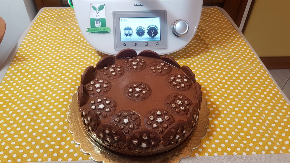 Mettere nel boccale 350 grammi di biscotti e far tritare per 15 secondi a velocità 7. Aggiungere il burro e far amalgamare per 25 secondi a velocità 5. Versare in una tortiera con chiusura a cerniera rivestita con carta da forno e livellare bene, riporre in frigo. Mettere nel boccale lo zucchero, le uova e la vanillina e far montare per 8 minuti a velocità 5. Aggiungere il mascarpone e far amalgamare per 30 secondi a velocità 4. Sciogliere la gelatina un pentolino con 2 cucchiai di latte e versarla nel boccale. Versare la nutella e far amalgamare per 30 secondi a velocità 4 al termine mettere da parte. Mettere nel boccale il resto dei biscotti e far tritare per 7 secondi a velocità 7. Aggiungere alla crema di nutella e mascarpone ed amalgamare delicatamente. Prendere la tortiera dal frigo, bagnare i biscotti messi da parte nel latte e posizionarli  lungo il bordo della tortiera. Versare la crema di nutella e mascarpone e livellare bene. Spolverizzare con il cacao amaro e guarnire con altri biscotti bagnati nel latte. Riporre in frigo e lasciare riposare per almeno 3 ore prima di servire.