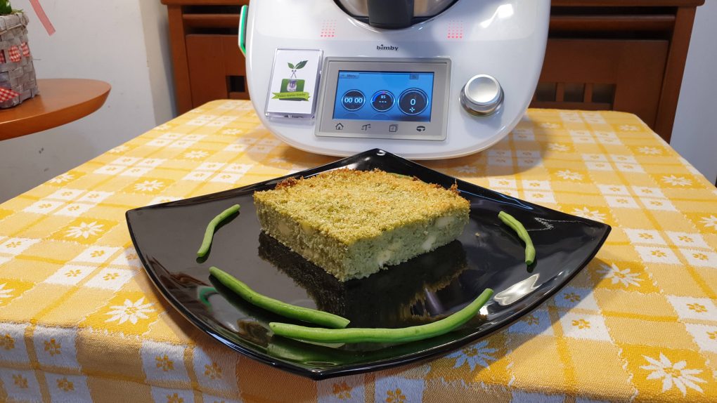 Iniziamo la ricetta mettendo nel boccale il parmigiano, il pecorino, il basilico e far tritare per 10 secondi a velocità 10, al termine mettere da parte. Mettere nel boccale lo scalogno e far tritare per 3 secondi a velocità 7, al termine riunire sul fondo del boccale con la spatola. Aggiungere l’olio e far insaporire per 3 minuti a 120 gradi a velocità 3. Unire le patate, i fagiolini e far tritare per 20 secondi a velocità 6. Al termine riunire sul fondo del boccale con la spatola e cuocere per 20 minuti a 100 gradi a velocità 3. Al termine lasciare raffreddare all’interno del boccale. Aggiungere le uova, il trito di parmigiano, 50 g di pangrattato aromatizzato, il sale, il pepe, la noce moscata e far amalgamare per 40 secondi a velocità 3. Aggiungere la fontina o il provolone dolce a cubetti e far amalgamare per 20 secondi con l’antiorario a velocità 3. Trasferire in uno stampo ben imburrato e cosparso con il pangrattato. Livellare bene, spolverizzare con il pangrattato, irrorare con un filo d’olio, fare delle righe con i rebbi di una forchetta. Cuocere in forno preriscaldato a 180 gradi per 40 minuti circa. Servire tiepido o freddo.