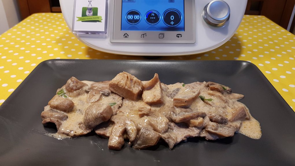 Terminata la cottura, mettere le fettine in un piatto da portata. Aggiungere nel boccale la panna, il prezzemolo e far cuocere per 5 minuti a 100 gradi con l’antiorario a velocità soft. Versare la salsa sulle fettine e servire.