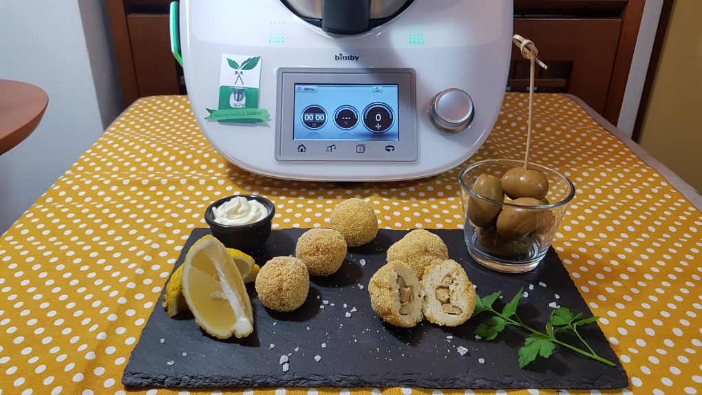 Mettere nel boccale il parmigiano ed il pecorino e tritare per 10 secondi a velocità 10. Aggiungere la scorza di limone, il prezzemolo e l’aglio e tritare per 10 secondi a velocità 10. Unire il pangrattato e tritare per 10 secondi a velocità 10. Aggiungere il merluzzo tagliato a pezzetti e l’uovo e far amalgamare per 1 minuto a velocità 8. Tagliare le olive a pezzettini. Mettere in una ciotola la farina di mais. Formare le polpettine inserendo, se lo gradite, al centro le olive a pezzettini, passarle nella farina di mais. Le polpettine possono essere fritte o cotte in forno a 180° per 30 minuti circa.