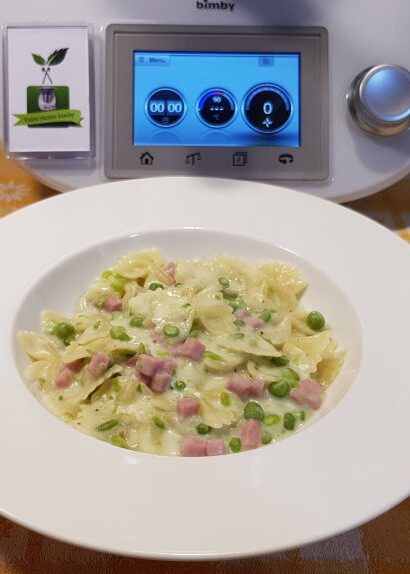 Farfalle risottate con panna prosciutto e piselli