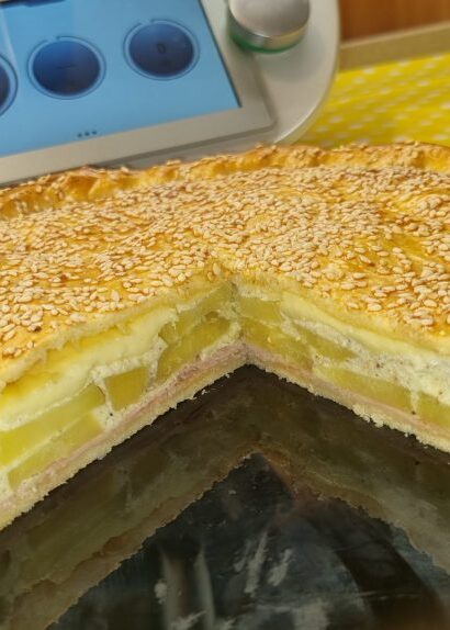 Torta salata con patate prosciutto e scamorza