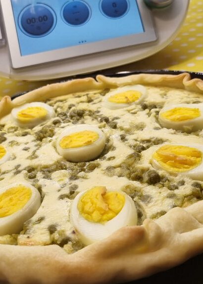 Torta salata con uova e piselli
