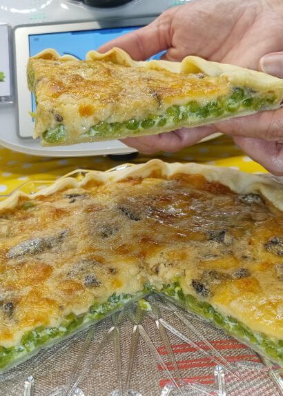 Torta salata con piselli scamorza e gorgonzola