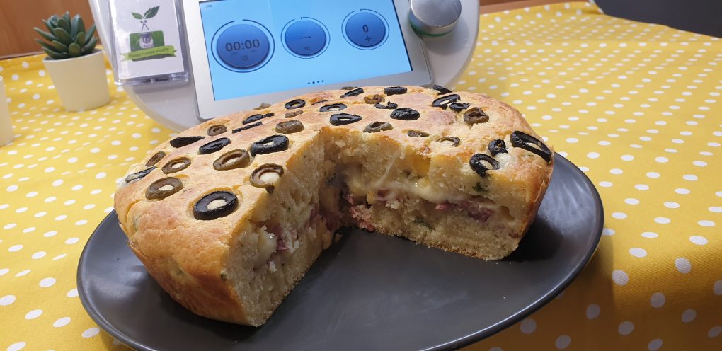 Versare 400 grammi d’impasto in uno stampo da 22 – 24 cm rivestito con carta da forno. Mettere sopra l’impasto lo speck, una parte delle olive, il salame, la provola e coprire il tutto con il resto dell’impasto. Mettere sopra il resto delle olive e Cuocere in forno preriscaldato statico a 180 ° per 40-50 minuti circa. Controllare la cottura, la torta dovrà risultare dorata. Lasciare intiepidire prima di rimuovere dallo stampo e servire.