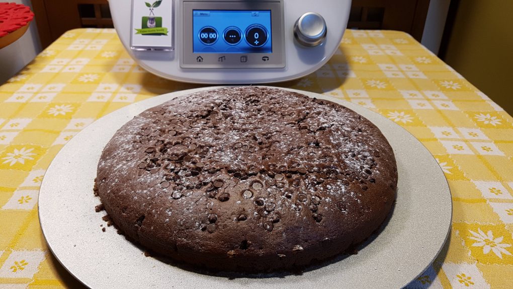 Iniziamo la ricetta mettendo nel boccale lo zucchero e far polverizzare per 10 secondi a velocità 10, al termine riunire sul fondo del boccale con la spatola. Aggiungere l’acqua, l’olio di semi, la vanillina, la farina, l’essenza d’arancia, il cacao amaro, il lievito, il pizzico di sale e far amalgamare per 2 minuti a velocità 4. Trasferire il composto in uno stampo con apertura a cerniera rivestito sul fondo con carta da forno ed imburrato sui laterali. Mettere sopra le gocce di cioccolato. Cuocere in forno preriscaldato statico 180 gradi per 25 minuti circa fare la prova stecchino.