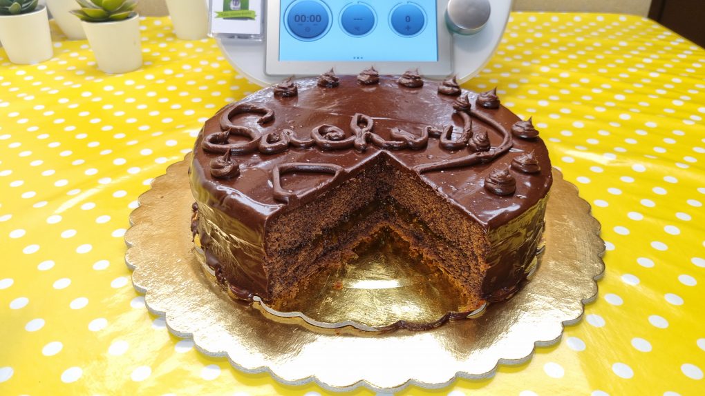 Nel frattempo preparare la glassa. Mettere nel boccale il cioccolato e far tritare per 10 secondi a velocità 7, al termine riunire sul fondo del boccale con la spatola. Aggiungere la panna che dovrà essere a temperatura ambiente e far amalgamare per 5 minuti a 50 gradi a velocità 2.