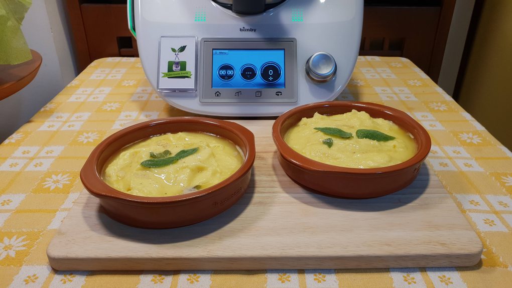 Lavare ed asciugare bene il boccale. Mettere nel bocale il burro, l’aglio, il sale, il pepe, la salvia e far insaporire per 3 minuti a 100 gradi a velocità 1. Al termine, versare sulla polenta e servire.
